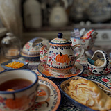 Керамика в магазине представлена различными предметами, в целом, довольно типовыми по своему назначению в кухонном обиходе, но расписаны они так, что как-будто это не просто, скажем,чашка, а некий праздничный символ стола, который хочется взять в руки и лю...