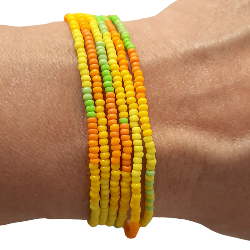 Оригинальное украшение ручной работы из цветного бисера от проекта "Тонвтон". Эластичная леска браслета обеспечит идеальную посадку на любой руке.