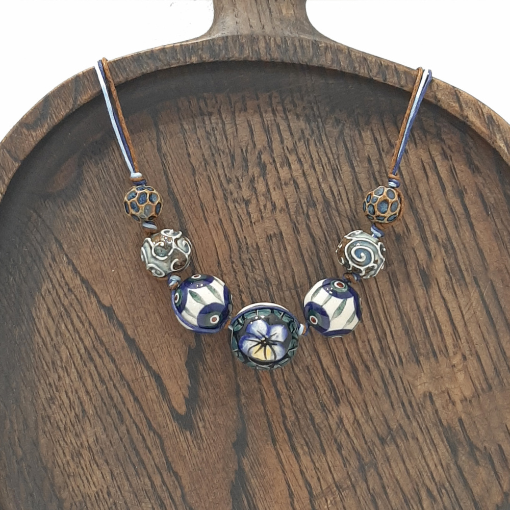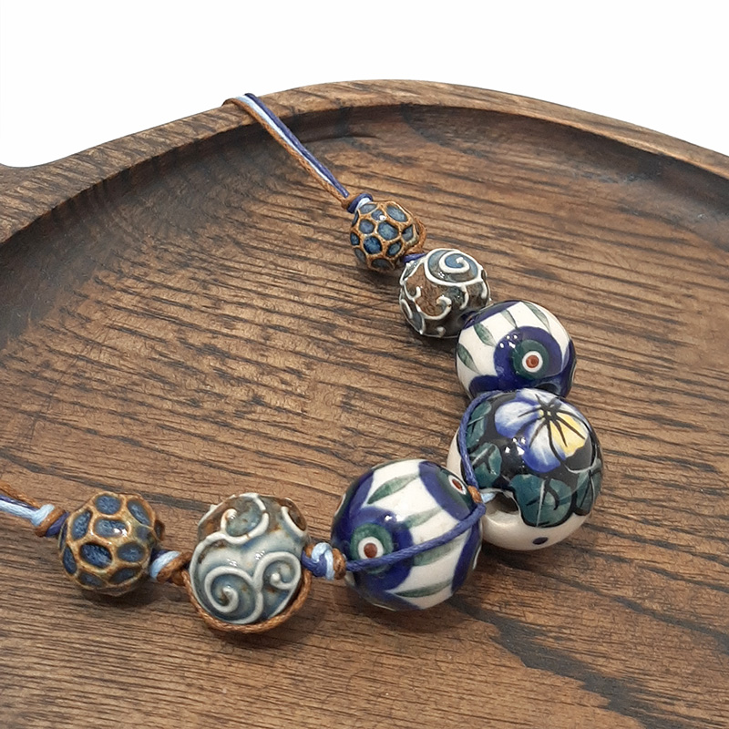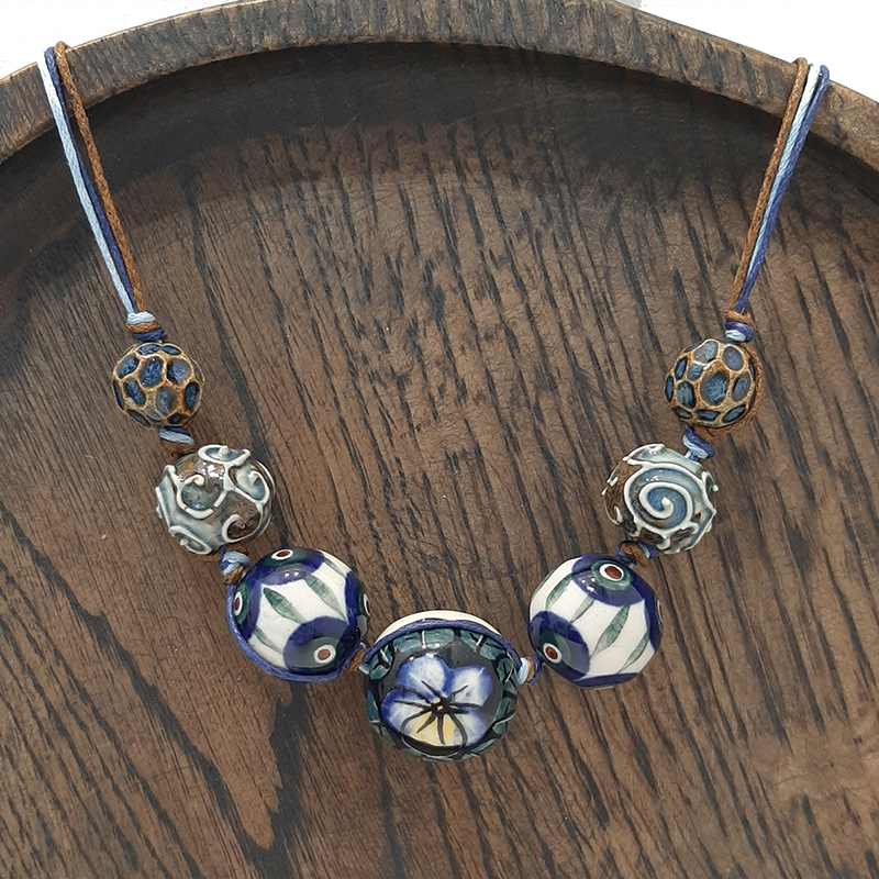 Самобытное украшение из прочных керамических бусин, расписанных вручную. В создании наших бус используется скользящий узел, который позволяет обойтись без застежки. Благодаря ему регулируется длина украшений. Минимальная длина наших бус примерно 50 см, а максимальная 65-70 см. Оригинальное украшение порадует вас и ваших друзей, поднимет настроение и будет отличным подарком!