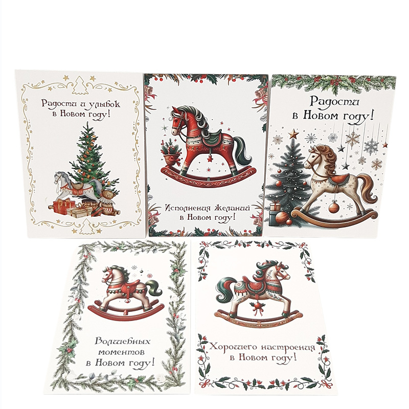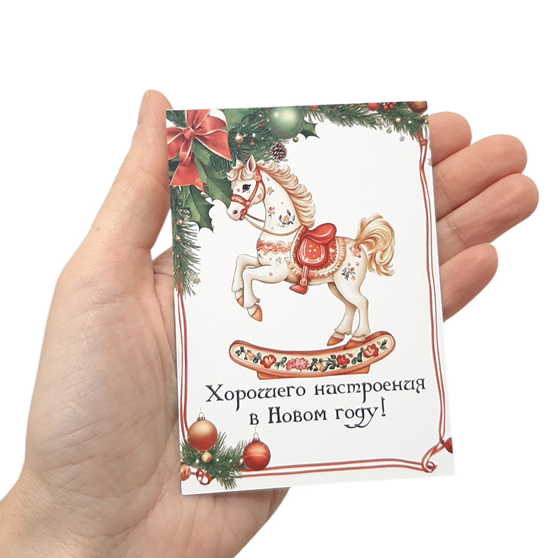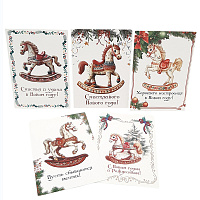 Открытки со старинными лошадками-качалками и новогодними пожеланиями