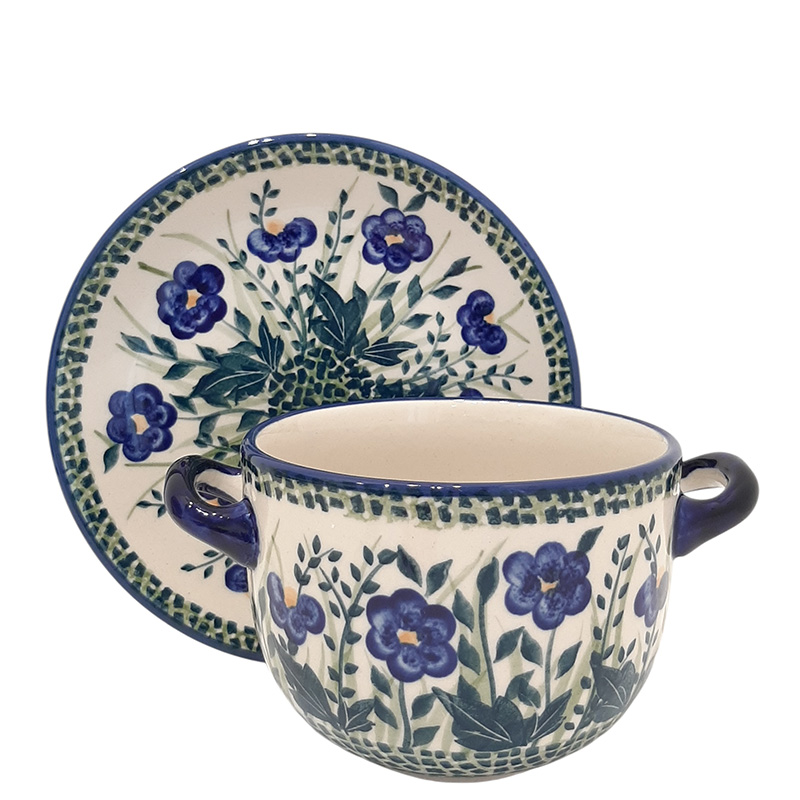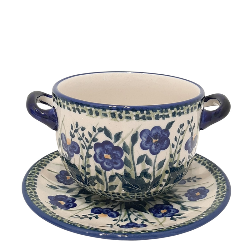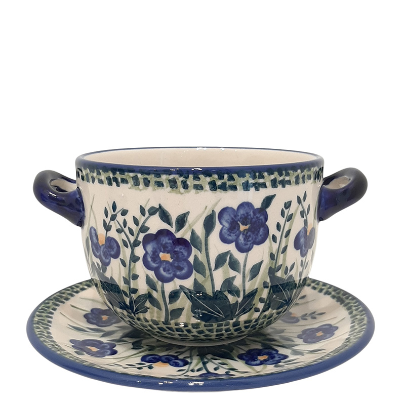 бульонница с ручками и блюдцем