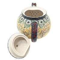 Заварочный чайник с удобной крышкой-замочком. Между носиком и телом чайника не сплошное отверстике, а дырочки, поэтому он не нуждается в дополнительном ситечке. Благодаря традиционным выверенным технологиям носик у заварочного чайника не подтекает. Керамическая посуда долго держит тепло, поэтому чай получится ароматным и вкусным. Чайник, как и всю посуду "Птицы Синицы", можно мыть в посудомоечной машине.