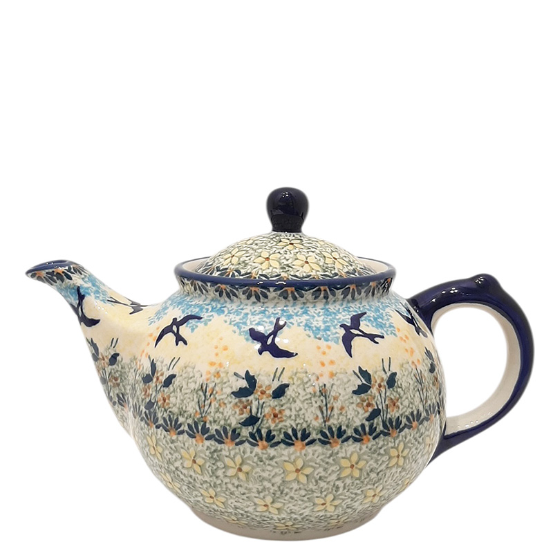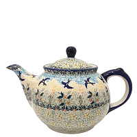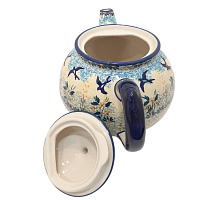 Заварочный чайник с удобной крышкой-замочком. Благодаря традиционным выверенным технологиям носик у заварочного чайника не подтекает. Керамическая посуда долго держит тепло, поэтому чай получится ароматным и вкусным. Чайник, как и всю посуду "Птицы Синицы", можно мыть в посудомоечной машине.