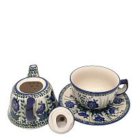 Маленький заварочный чайник (объём 0,45 л) с удобной крышкой-замочком и чайная пара (объём 0,3 л) подойдут для камерного чаепития. Благодаря традиционным выверенным технологиям носик у заварочного чайника не подтекает. Керамическая посуда долго держит тепло, поэтому чай получится ароматным и вкусным. Чайник, как и всю посуду "Птицы Синицы", можно мыть в посудомоечной машине.