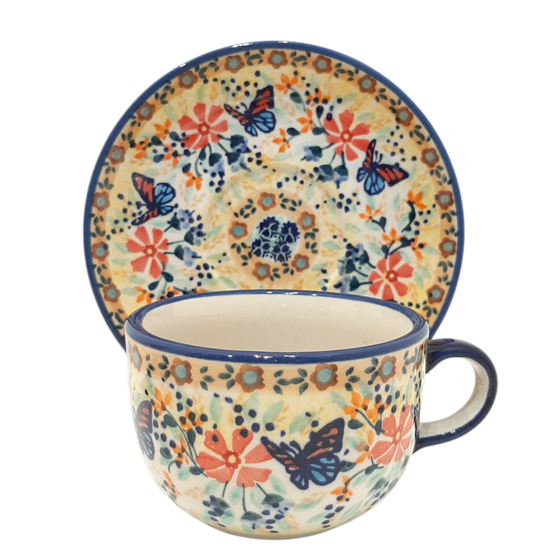 Чайная пара классического размера (0,2 л) создаст уютную атмосферу на вашей кухне во время чаепитий. Изделия расписываются вручную, каждая пара уникальна и неповторима. Долго сохраняет тепло напитка. Можно мыть в посудомоечной машине. Болеславская керамика устойчива к появлению царапин и сколов, поэтому чайная пара прослужит вам долго. Прекрасный подарок на любой праздник.