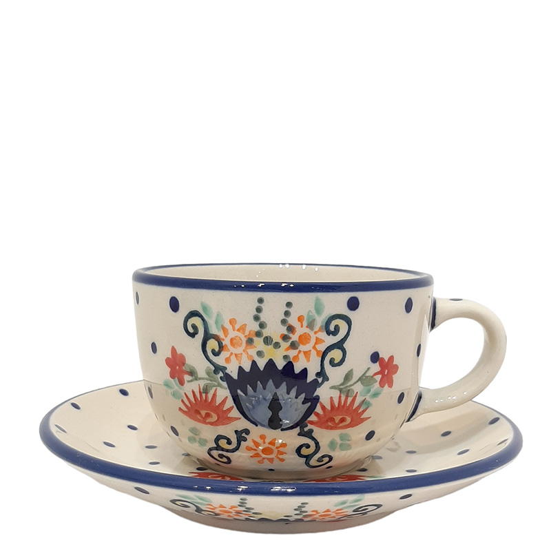 Чайная пара классического размера (0,2 л) создаст уютную атмосферу на вашей кухне во время чаепитий. Изделия расписываются вручную, каждая пара уникальна и неповторима. Долго сохраняет тепло напитка. Можно мыть в посудомоечной машине. Болеславская керамика устойчива к появлению царапин и сколов, поэтому чайная пара прослужит вам долго. Прекрасный подарок на любой праздник.