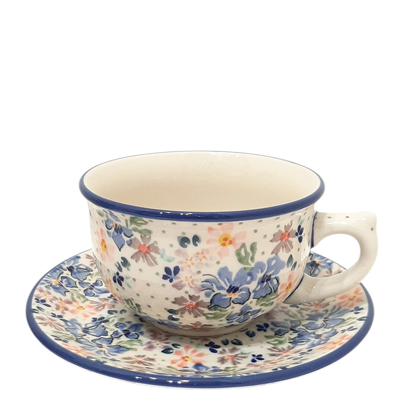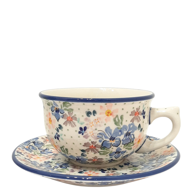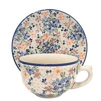 Большая чайная пара ручной работы незаменима для любителей больших порций чая или кофе. Отлично впишется в любой интерьер как городской, так и загородной кухни. Болеславская керамика очень прочна и устойчива к сколам, поэтому будет долго радовать своего обладателя. Можно использовать в посудомоечной машине и СВЧ. Станет приятным подарком для ваших близких.
