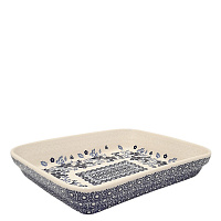 Прямоугольное блюдо. Может использоваться как сервировочное. Также может использоваться в духовке и микроволновой печи. Максимальная тем-ра 250С. Можно мыть в посудомоечной машине.
