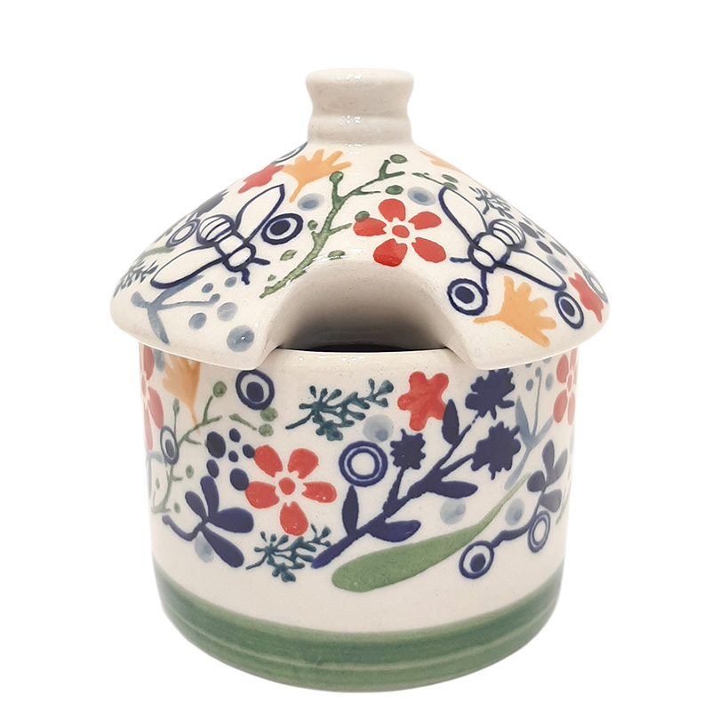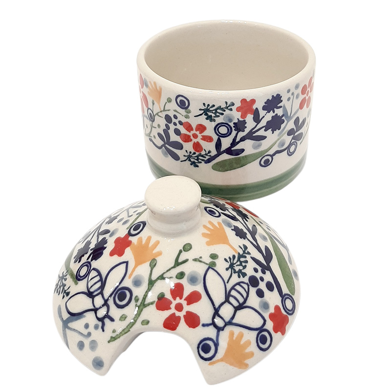Баночка для меда с дивными пчелками на крышке и отверстием для ложки или ложки-веретена. Удобный объем в 300 мл позволит хранить мёд или варенье в небольших количествах, чтобы они не засахарились. Можно использовать как сахарницу. Банку можно ставить в холодильник, использовать в микроволновой печи и мыть в посудомоечной машине.